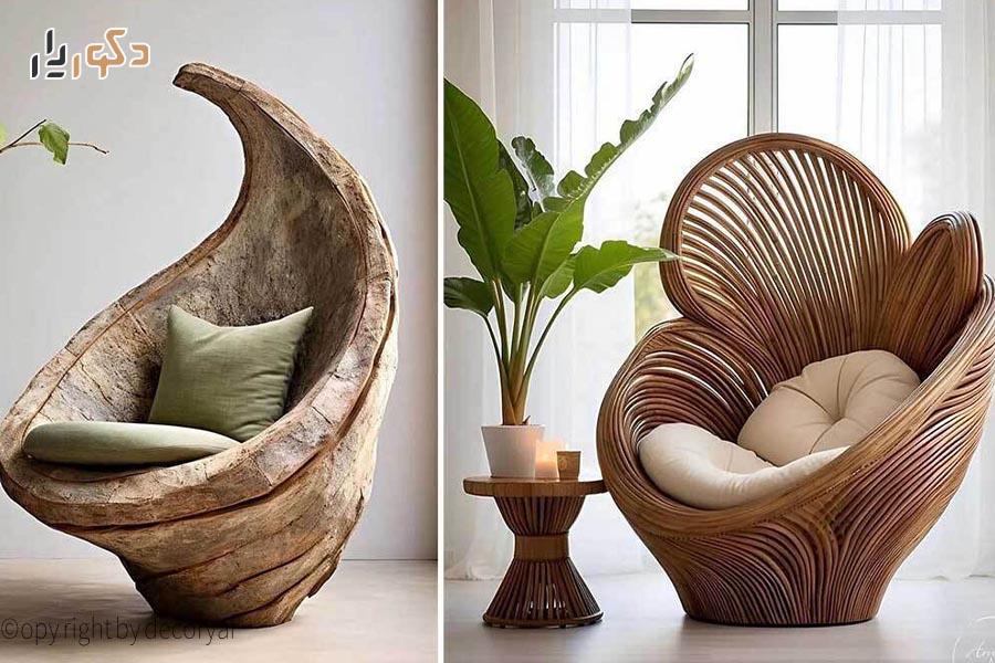 صندلیهای الهام گرفته از طبیعت معمولاً طراحیهایی ارگونومیک دارند که به فرم بدن انسان نزدیکتر هستند.